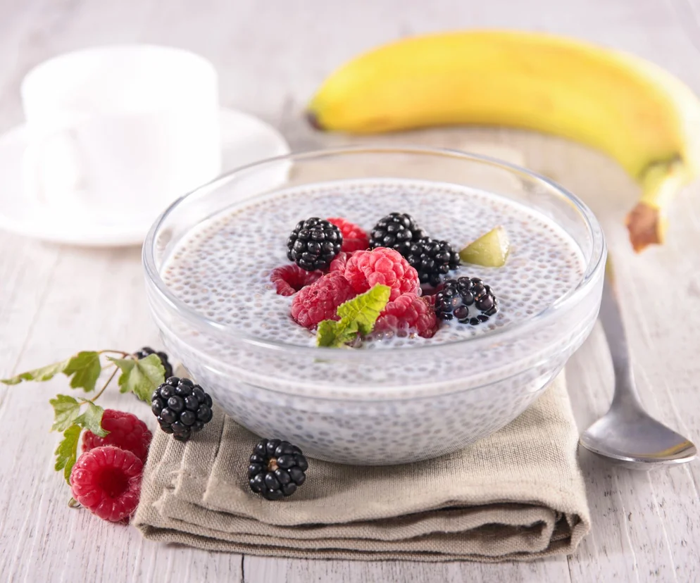 Czekoladowy pudding chia z owocami